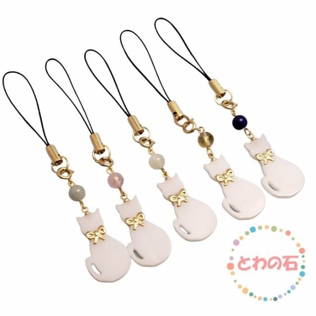 スピリチュアルストーン 選べる10点 黒猫 白猫 厄除け 開運 お守りストラップ パワーストーン 猫ストラップ 天然石 携帯ストラップ 福猫 メール便送料無料 ラッピング無料 プレゼント 誕生日 アクセサリー | towanoisi