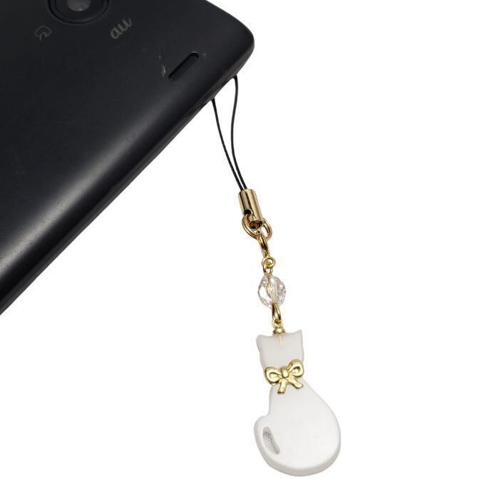 白猫 開運 厄除け クリスタル パワーストーン ストラップ 水晶 4月の誕生石 誕生日プレゼント ギフト 送料無料 ラッピング無料 ねこ ネコ 猫ストラップ 福猫 天然石 携帯ストラップ 1000円ポッキリ アクセサリー | towanoisi