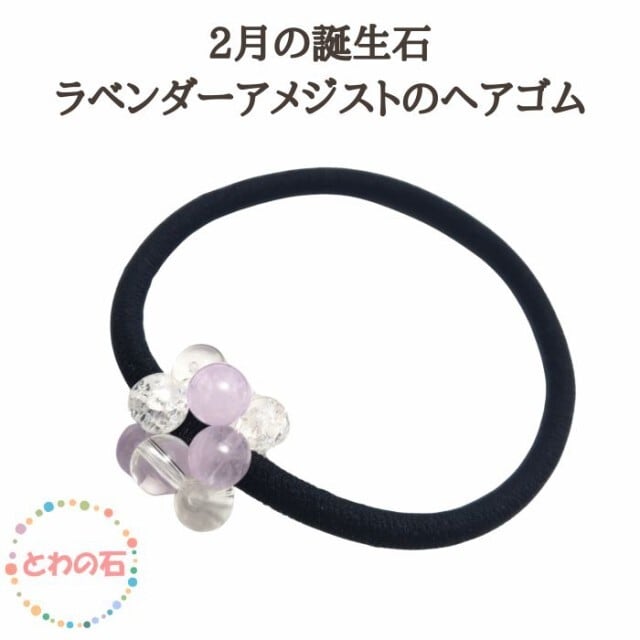 髪飾り ヘアゴム ラベンダーアメジスト クリスタル 水晶 2月の誕生石 天然石 アクセサリー 黒ゴム 紫色 藤色 ハンドメイド 大人っぽい シンプル かわいい ヘアアクセサリー パワーストーン 誕生日プレゼント ギフト 送料無料 | towanoisi