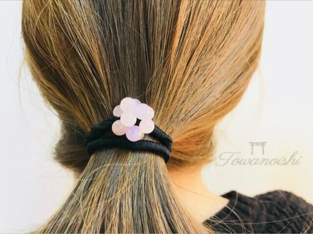ヘアゴム ローズクォーツ ラベンダーアメジスト
