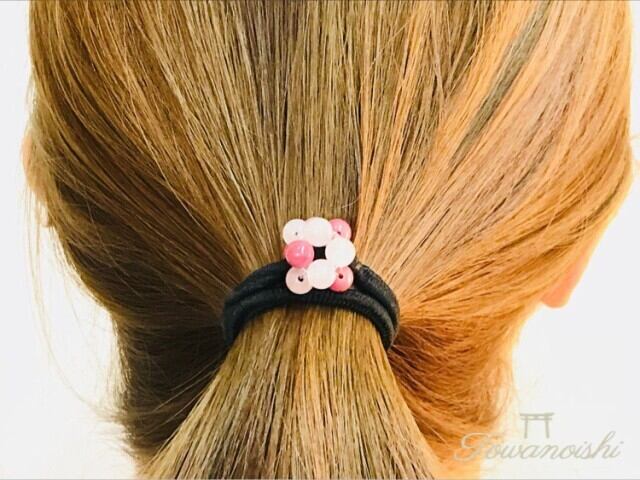 ヘアゴム ローズクォーツ シリシャスシスト 髪飾り ヘアアクセサリー パワーストーン 恋愛運 ピンクアクセサリー 茶ゴム ハンドメイド シンプル 誕生日プレゼント ギフト 送料無料 | towanoisi