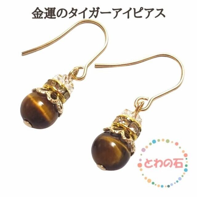 金運アップ タイガーアイ パワーストーン ピアス 天然石 クリスタル 水晶 ゴールド ハンドメイド アクセサリー レディース ゴールド ピアス 金属アレルギー チタン プレゼント ラッピング無料 | towanoisi