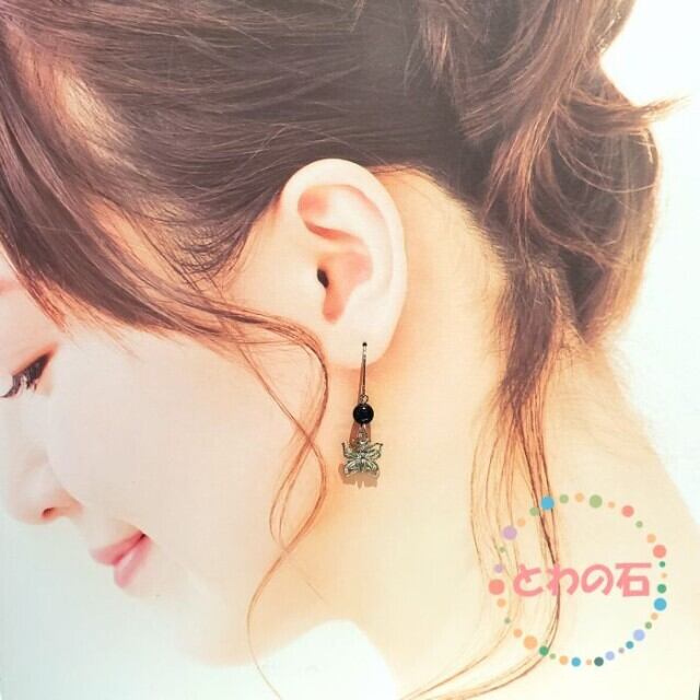 厄除け オニキス パワーストーン ピアス イヤリング 6mm 蝶 チョウ スピリチュアルストーン シンプル 金属アレルギー チタン 変更可 プレゼント ギフト ラッピング無料 メール便 アクセサリー | towanoisi