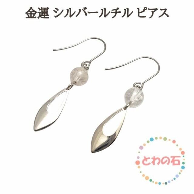 金運UP シルバールチルクォーツ ルチル パワーストーン ピアス 天然石 ハンドメイド アクセサリー プレゼント 金属アレルギー チタン イヤリング 変更可 ギフト 金運アップ グッズ | towanoisi
