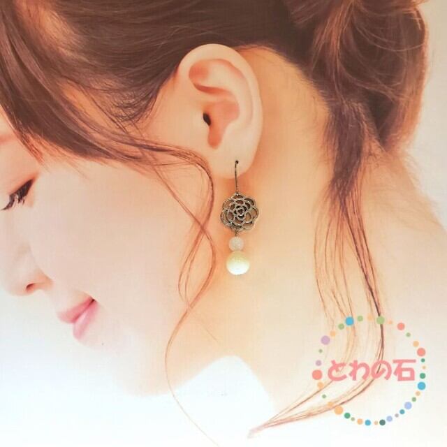 マザーオブパール パワーストーン ピアス 天然石 花 薔薇 白 貝 ハンドメイド アクセサリー レディース プレゼント 大人気 ピアス 金属アレルギー 対応 ギフト イヤリング変更可 送料無料 | towanoisi