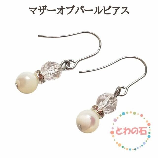 マザーオブパール パワーストーン ピアス 天然石 クリスタル 水晶 ハンドメイド 手作り とわの石 レディース 女性 メール便 送料無料 プレゼント ラッピング チタン アクセサリー | towanoisi