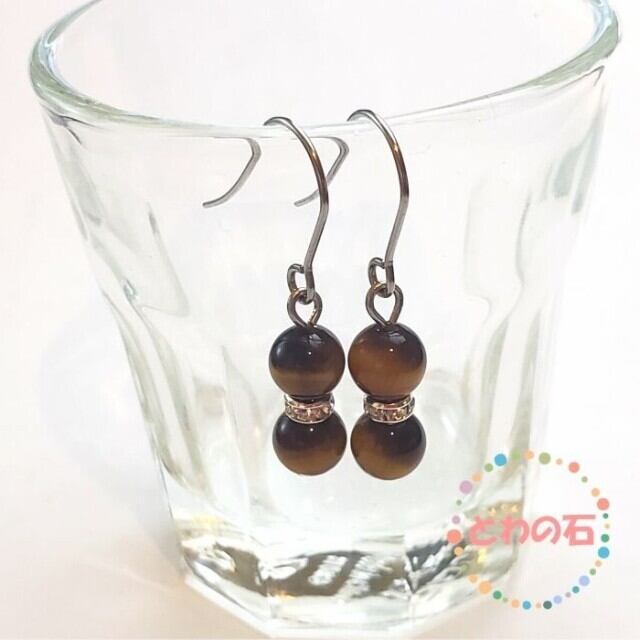 金運 タイガーアイ パワーストーン ピアス イヤリング 6mm 虎目石 金属アレルギー チタン 変更可 プレゼント ギフト ラッピング無料 送料無料 シルバー プレゼント アクセサリー | towanoisi
