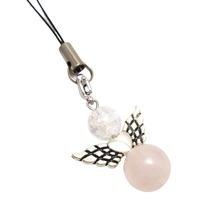 恋愛運 幸運 天使の羽の パワーストーンス トラップ ローズクォーツ レインボークォーツ 天然石 携帯ストラップ スマホ エンジェル 誕生日 プレゼント ラッピング無料 送料無料 アクセサリー | towanoisi