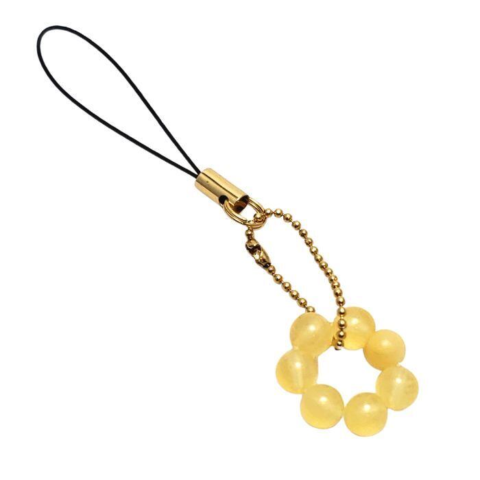 アラゴナイト パワーストーン ストラップ 天然石 携帯ストラップ 黄色 イエロー スマホ お守り 1000円ポッキリ チャーム プレゼント ラッピング無料 メール便 送料無料 誕生日 アクセサリー | towanoisi