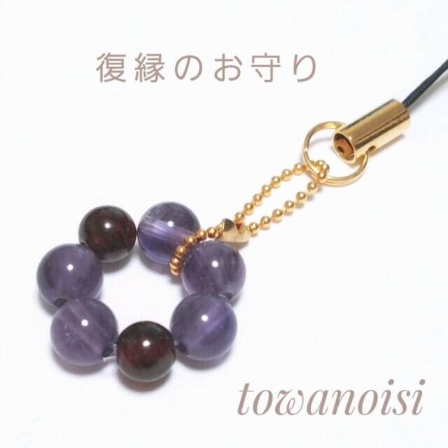 復縁 復活愛 不倫 のお守り アメジスト ガーネット 天然石 携帯ストラップ パワーストーン ストラップ 柘榴石・紫水晶 紫 パープル 赤 レッド スマホ お守り プレゼント ラッピング無料 メール便 送料無料 誕生日 アクセサリー | towanoisi