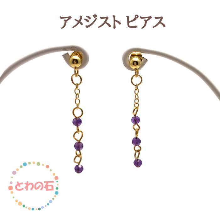 2月の誕生石 パワーストーン ピアス アメジスト 3mm ピアス 天然石 金属アレルギー 対応 誕生日プレゼント ギフト お守り 手作り ハンドメイド パワーストーンピアス送料無料 イヤリング変更可 アクセサリー | towanoisi