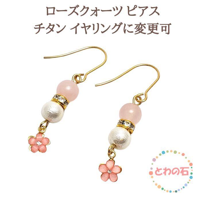 恋愛運 出会い パワーストーン ピアス 天然石 ローズクォーツ ピアス スピリチュアル ハンドメイド アクセサリー ゆらゆら かわいい おしゃれ プレゼント アレルギー対応 チタン イヤリング 変更可 ギフト 幸運 ラッピング無料 送料無料 | towanoisi