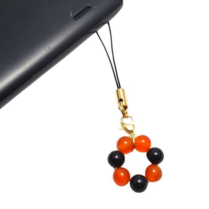 恋のチャンスを増やす 厄除け パワーストーン ストラップ オニキス オレンジカーネリアン 天然石 携帯ストラップ スマホ お守り プレゼント ラッピング無料 メール便 送料無料 アクセサリー ハロウィン チャーム | towanoisi