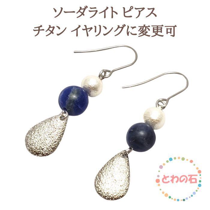 ソーダライト パワーストーン ピアス 天然石 コットンパール 青 大人かわいい 目標達成 決断力 ハンドメイド アクセサリー かわいい おしゃれ かっこいい ゆらゆら プレゼント ピアス 金属アレルギー 対応 ギフト | towanoisi